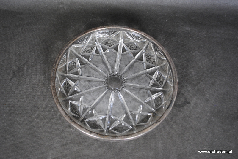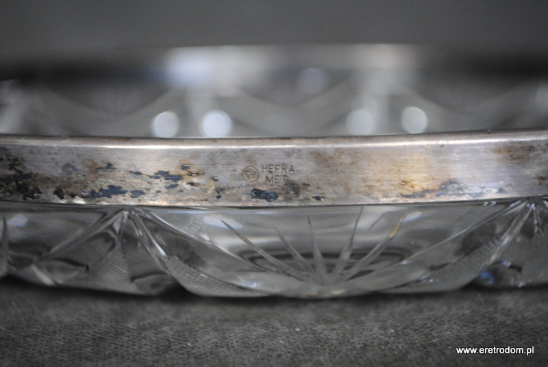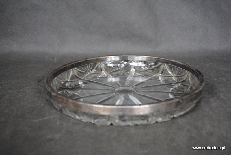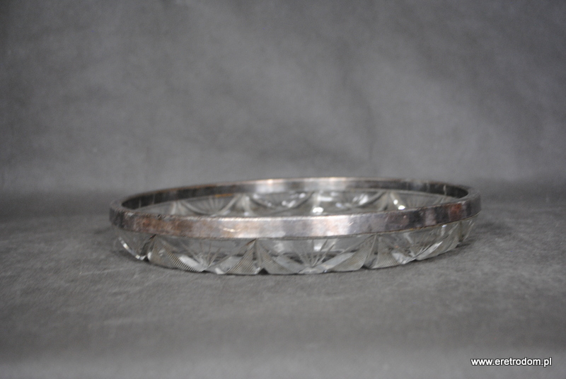 Śliczna taca/patera , produkcja Hefra. Kryształ, rant ozdobiony platerowanym pasem.