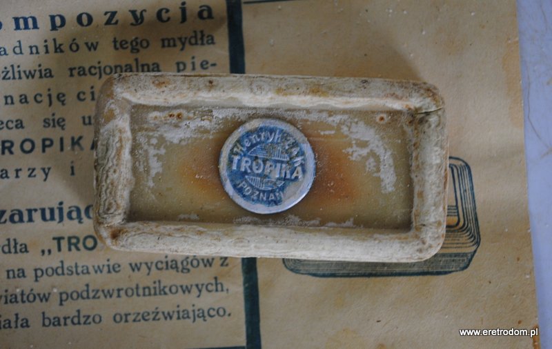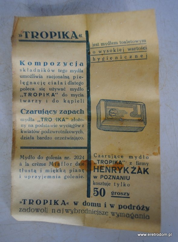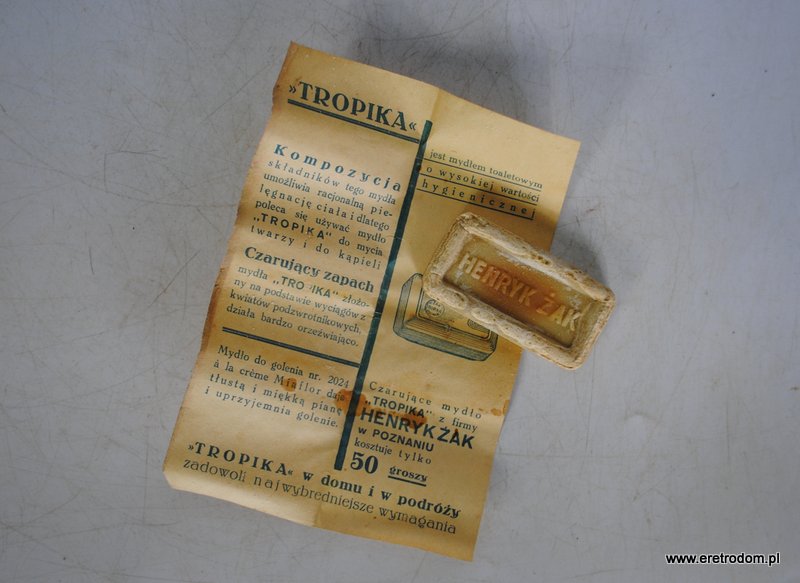 Kostka mydła Tropika wraz z ulotką. Henryk Żak, Poznań, I poł,. XXw.
