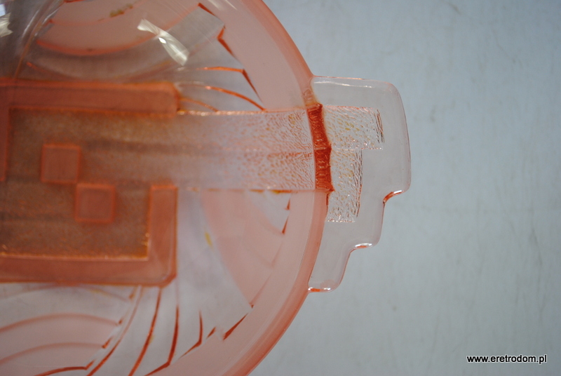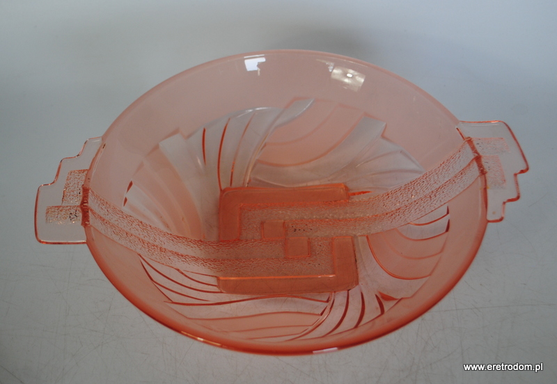 Zestaw salaterek (dwie małe i jedna duża), HS Hortensja. I poł. XXw. Numer katalogowy to 485. Szkło barwione w masie, częściowo trawione.