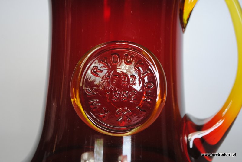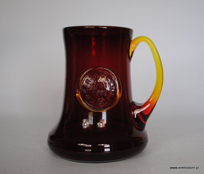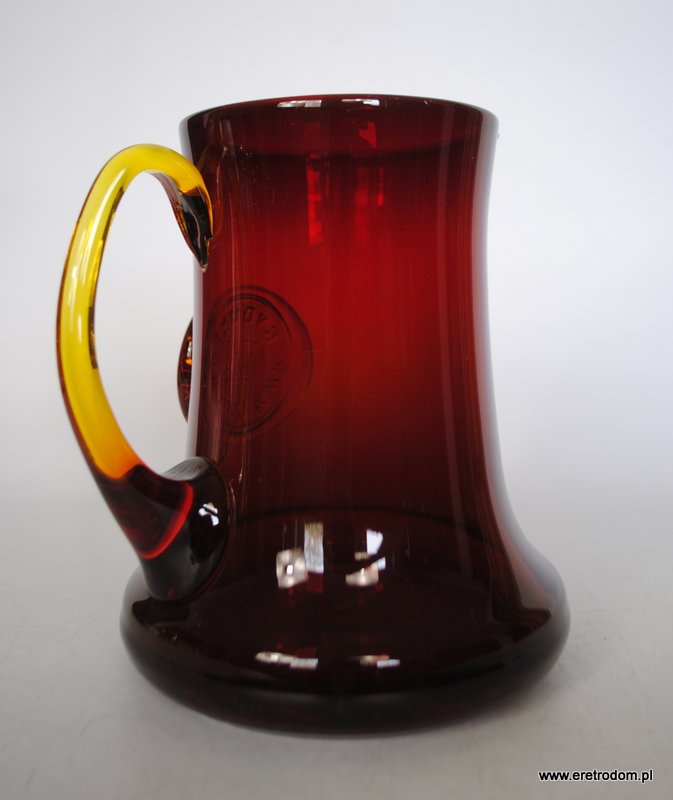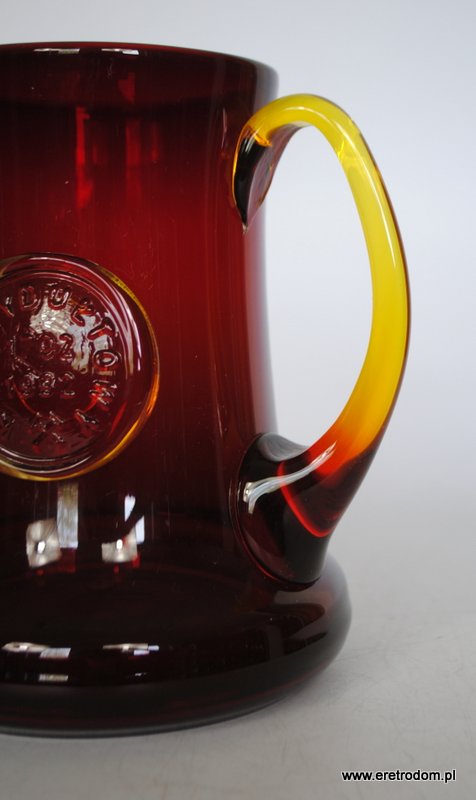 Kufel projektu Zbigniewa Horbowego (HS Sudety). Szkło sodowe, ręcznie formowane, barwione w masie.