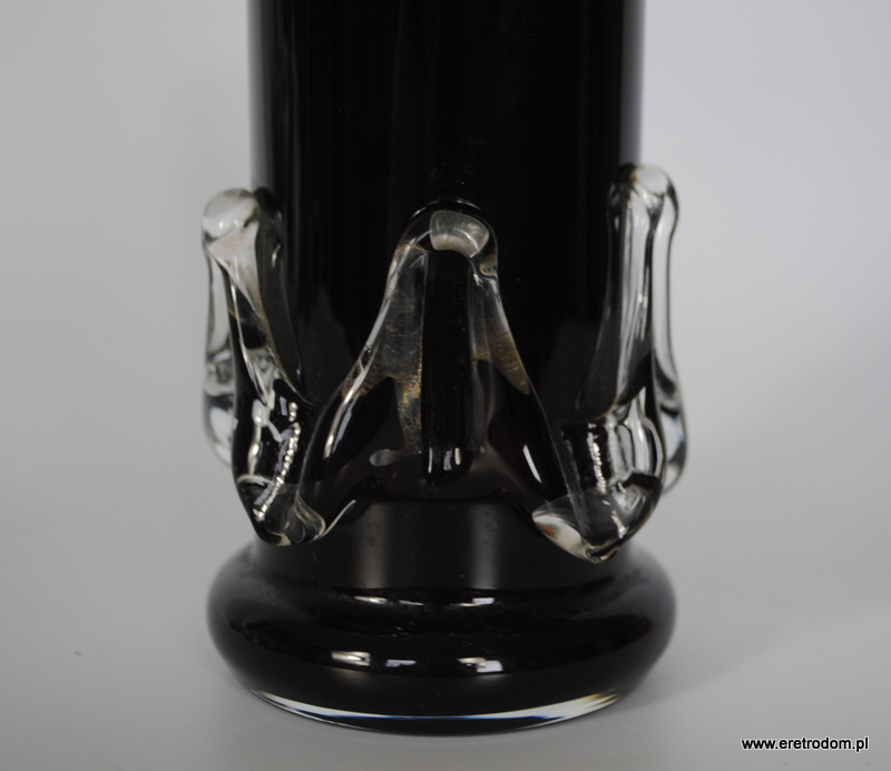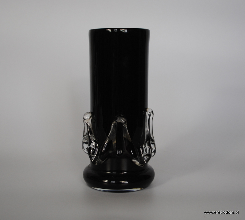 Wazon, HS Tarnowiec. Szkło barwione w masie na czarny kolor. Oplot bezbarwny.