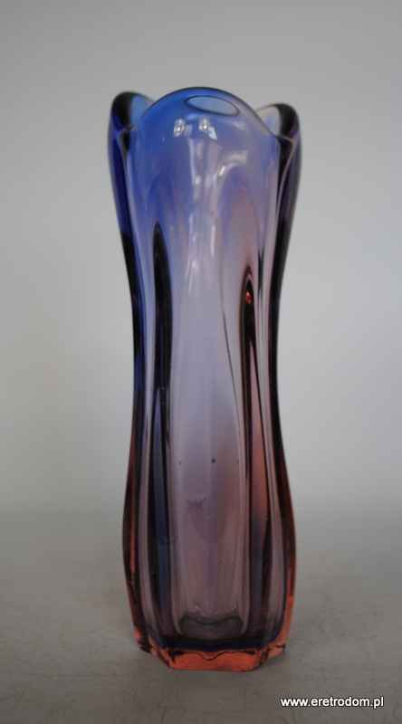 Wazon o nazwie Rotterdam. Projekt Bogdana Kupczyka dla HSG Ząbkowice. Szkło prasowane, barwione w masie.