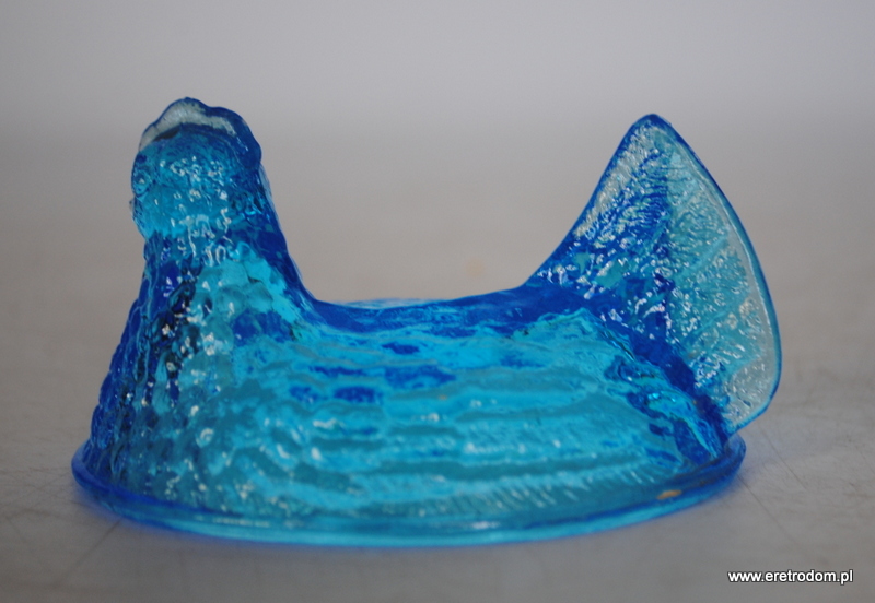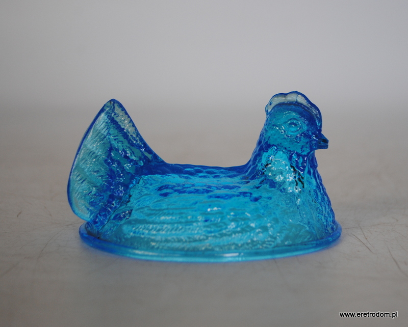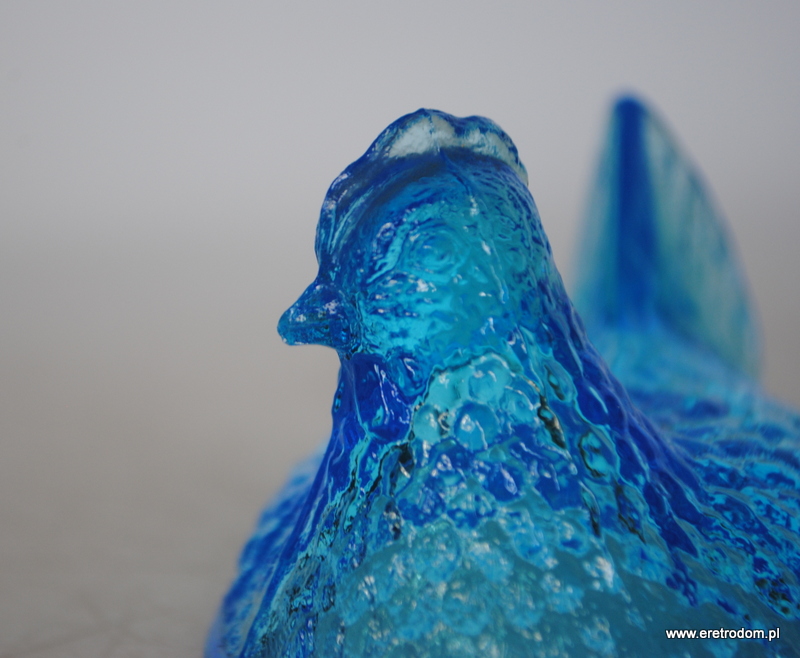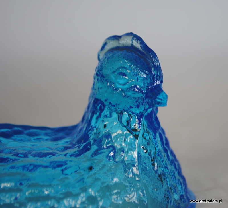 Góra małej bomboniery kury, , HSG Ząbkowice. Szkło prasowane, barwione w masie. Ładny, intensywny kolor.