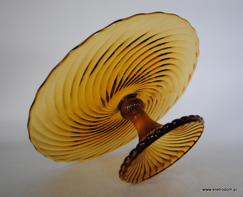 Tortownica, fason nazywany Spirelli/Twist, HSG Ząbkowice. Szkło prasowane, barwione w masie.