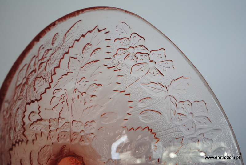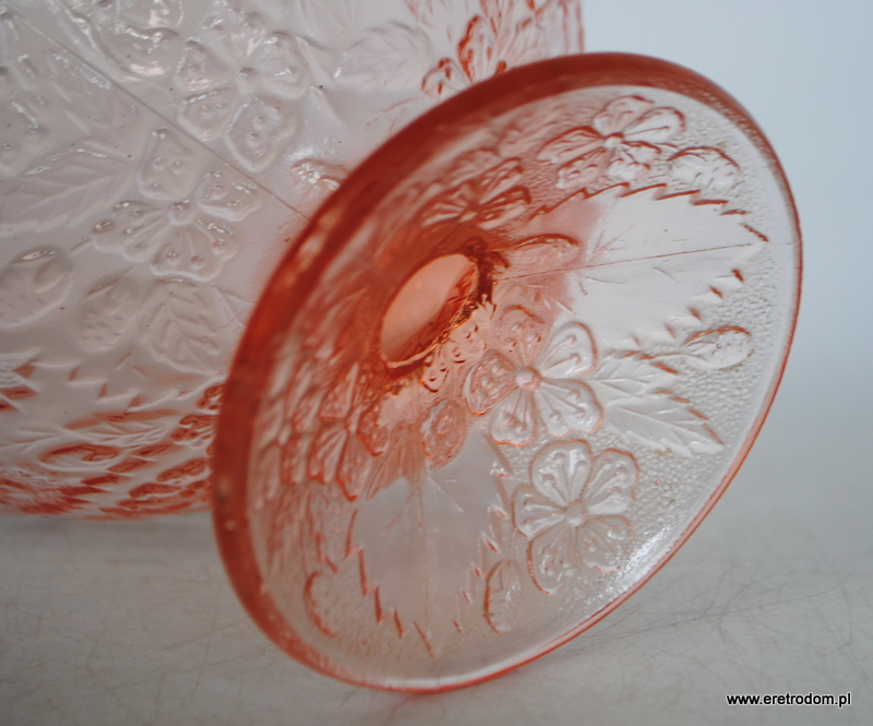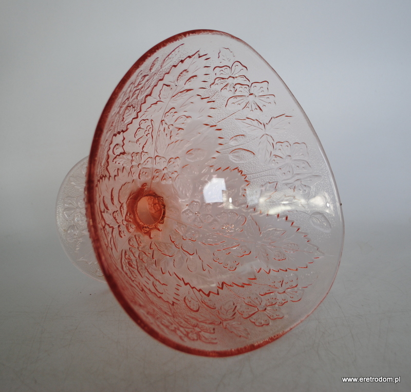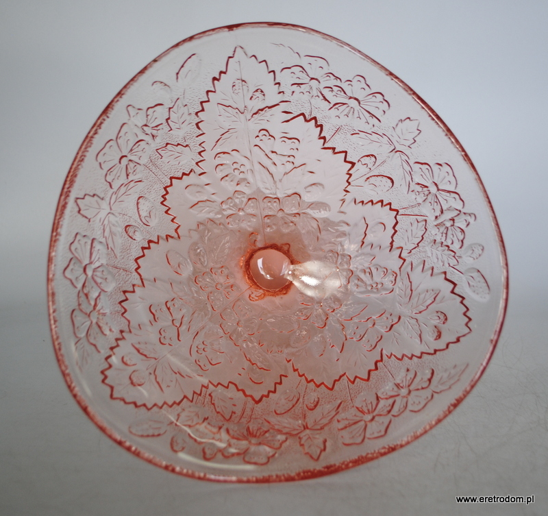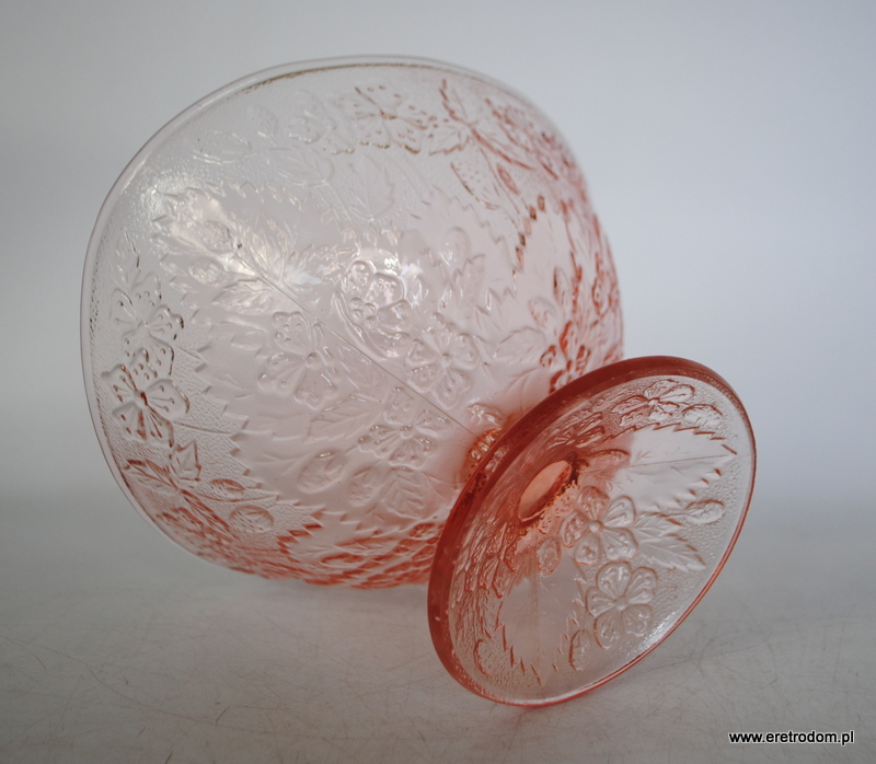 Owocarka, fason nazywany Strawberry/Poziomki, HSG Ząbkowice. Szkło prasowane, barwione w masie.