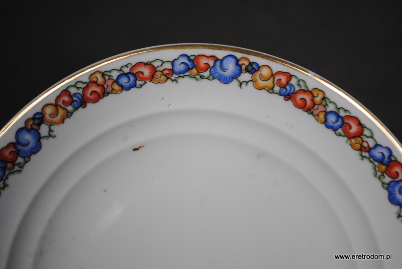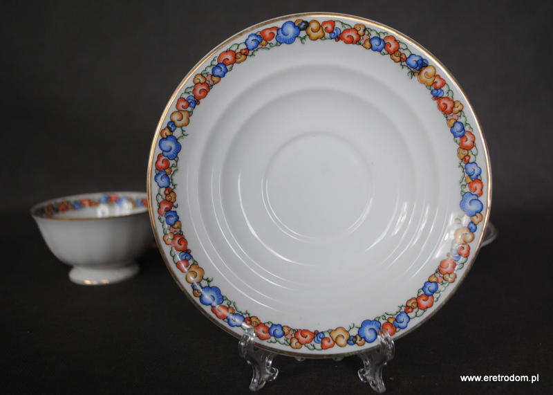 Kolekcjonerska filiżanka sygnowana Huta Franciszka (sygnatura z lat 1935-1939). Biała, delikatna porcelana ozdobiona czerwonym paskiem oraz pięknym, grubym złoceniem przy rantach oraz na uchu.