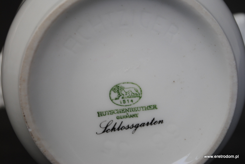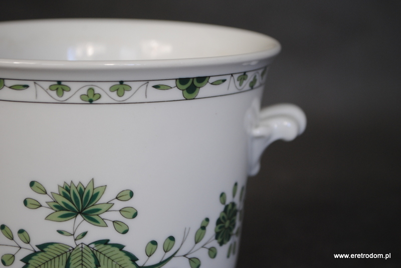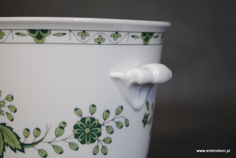 Osłonka na doniczkę sygnowana Hutschenreuther. Biała porcelana ozdobiona zielonymi motywami roślinnymi. Po bokach ozdobne uchwyty.