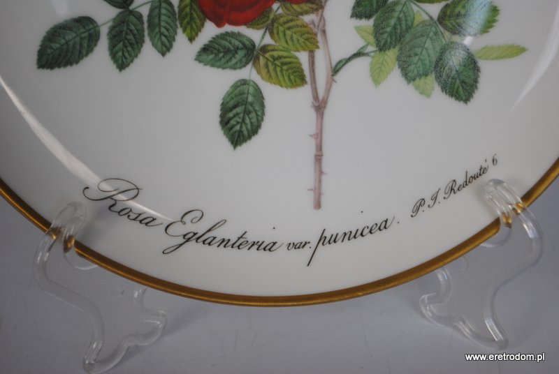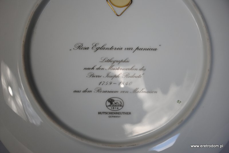 Talerz dekoracyjny sygnowany Hutschenreuther. Biała porcelana ozdobiona motywem kwiatowym.