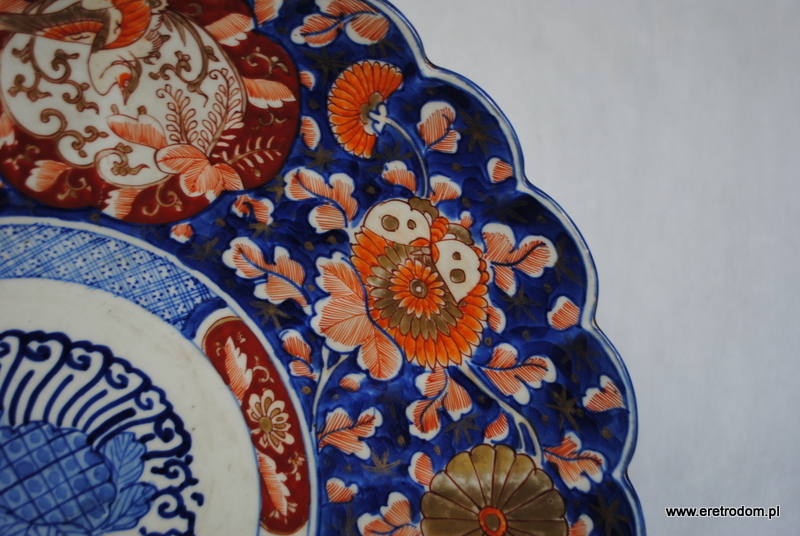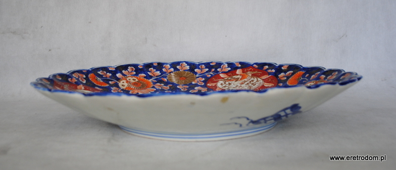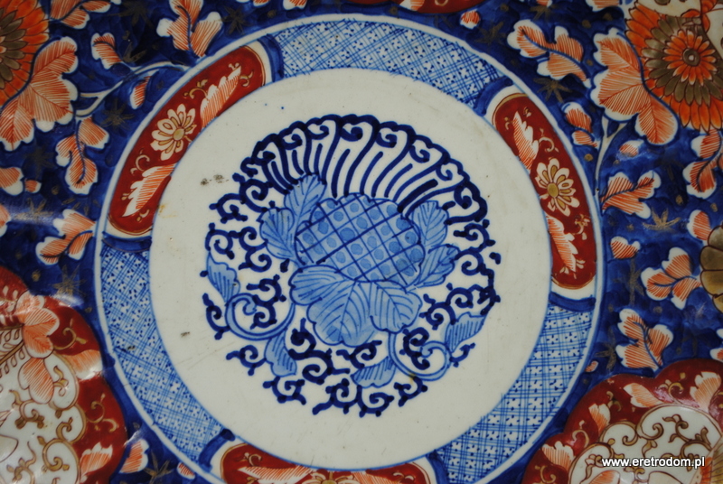 Patera Imari (Japonia), XIX w.. Gruba, ciężka ceramika ręcznie malowana z obu stron.