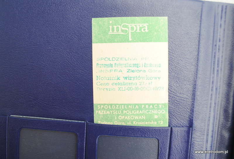 Inspra Zielona Góra, notatnik wizytówkowy. Twarda oprawa.