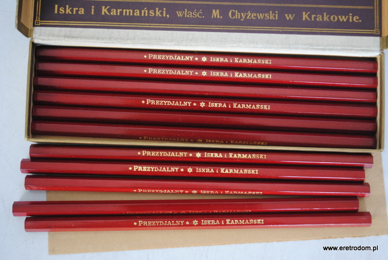 Iskra i Karmański Kraków właść. M. Czyżewski, I poł. XXw. Opakowanie wykonane z twardej tektury oraz 11 ołówków Prezydjalnych.