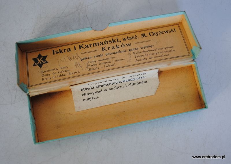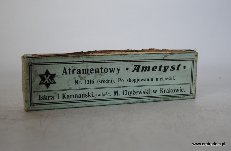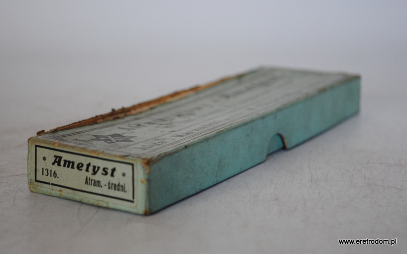 Opakowanie po ołówkach „Ametyst” firmy Iskry i Karmańskiego. Gruba tektura.