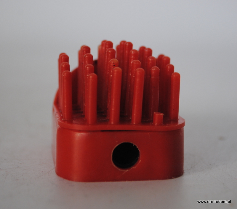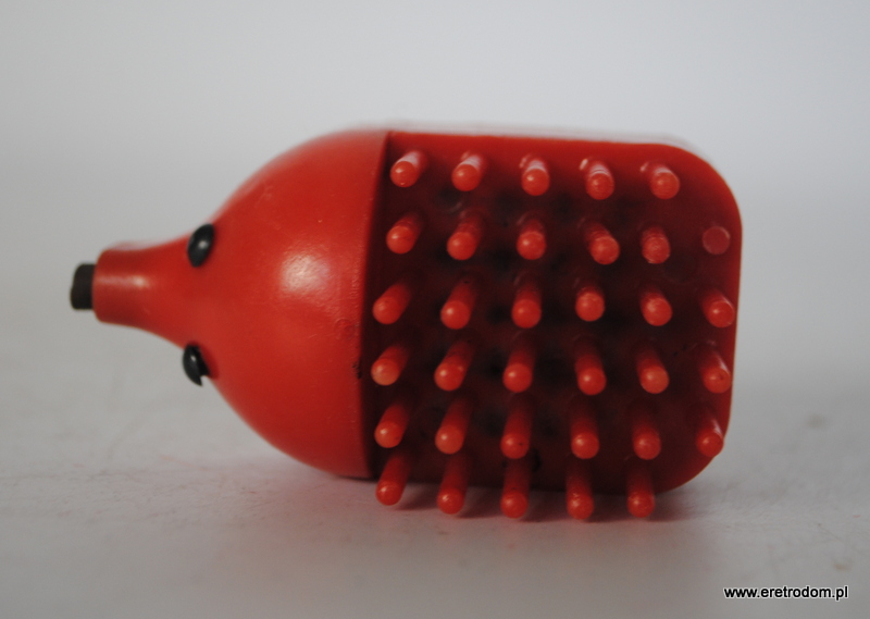 Stojak na kredki jeżyk, w tylnej części temperówka. Wersja mini. Plastik. Oryginał z prl.