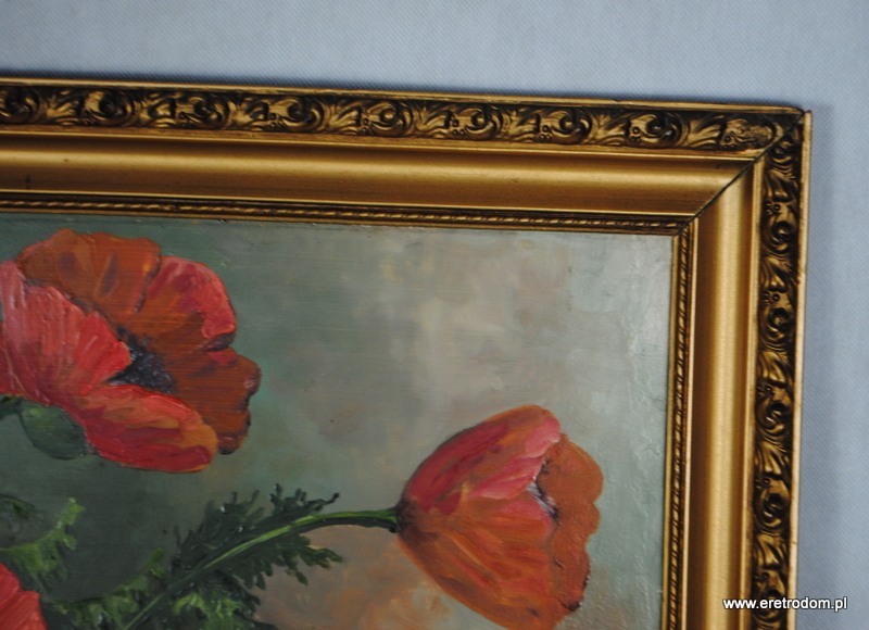 Józef Franke, obraz Maki, olej na dykcie, II poł XXw. Całość w drewnianej ramie.