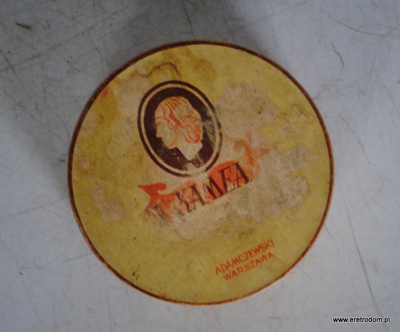 Kamea, Adamczewski Warszawa. Wykwintny puder matowy. I poł. XXw. Opakowanie z zawartością.