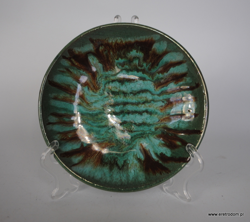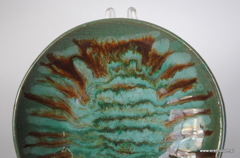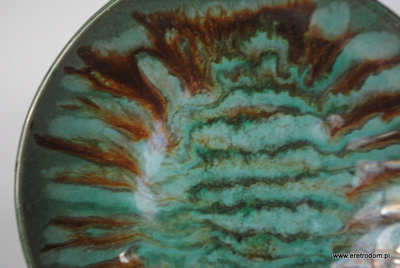 Patera pochodząca ze Spółdzielni Kamionka w Łysej Górze. Ceramika szkliwiona.