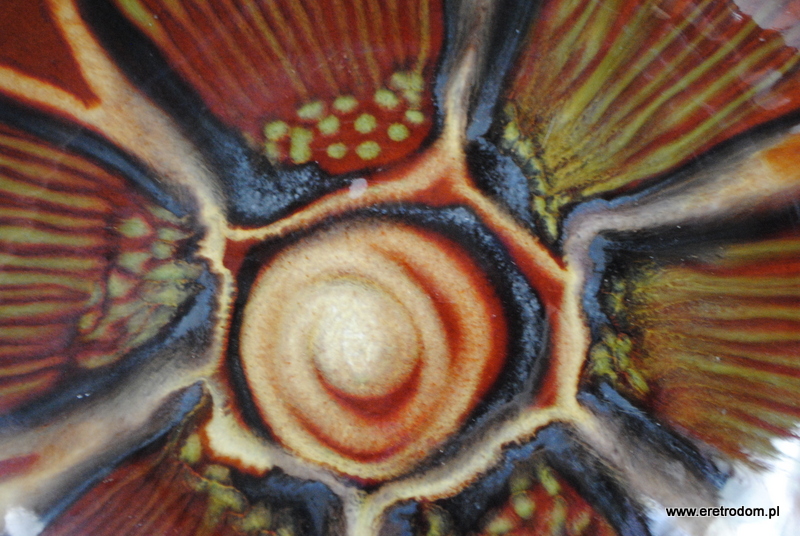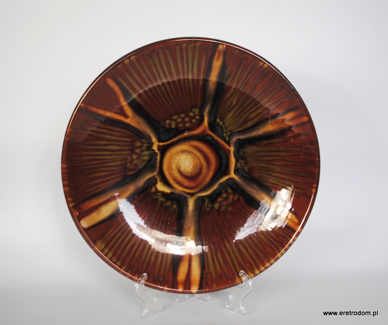 Patera pochodząca ze Spółdzielni Kamionka w Łysej Górze. Ceramika szkliwiona.