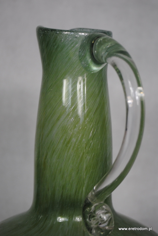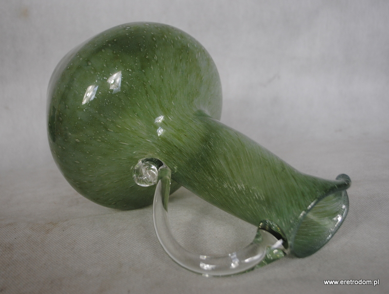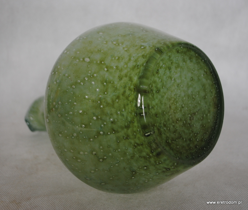 Butla wyprodukowana w latach 70-80. ( L. Fiedorowicz?). Szkło barwione w masie, posiada sporo bąbelków powietrza.