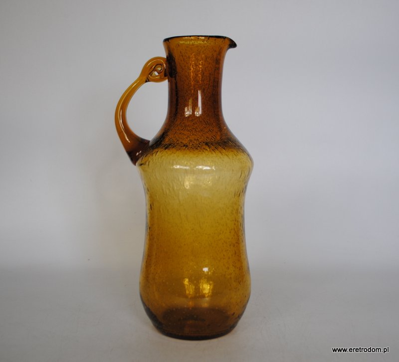 Dzbanek, najprawdopodobniej pochodzi ze Spółdzielni Kamionka z Łysej Góry. Szkło barwione w masie, spienione.