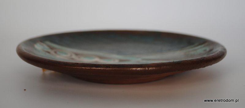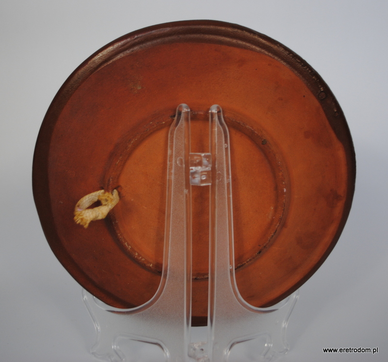 Patera czy też talerz dekoracyjny, produkcja Spółdzielnia Kamionka z Łysej Góry. Ceramika ładnie szkliwiona w typowy dla spółdzielni sposób. Do powieszenia na ścianie.