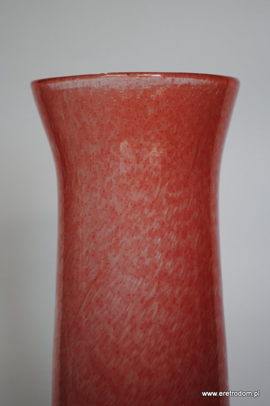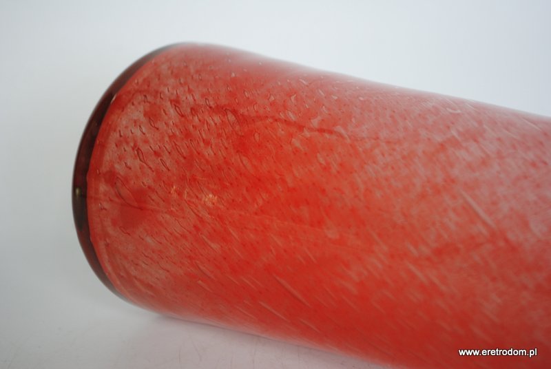 Wazon pochodzący ze Spółdzielni Kamionka z Łysej Góry. Szkło sodowe, ręcznie formowane, posiada pęcherze powietrza.