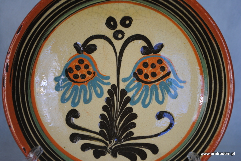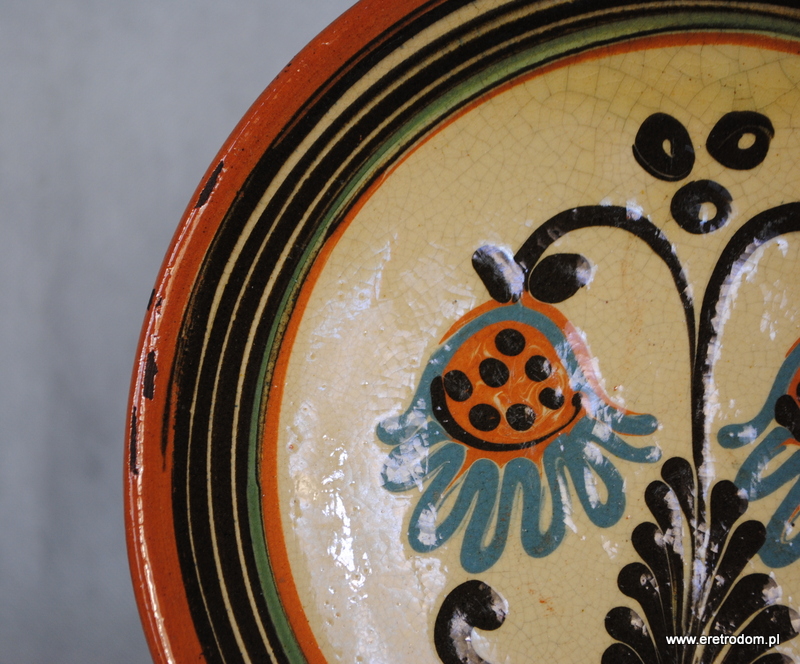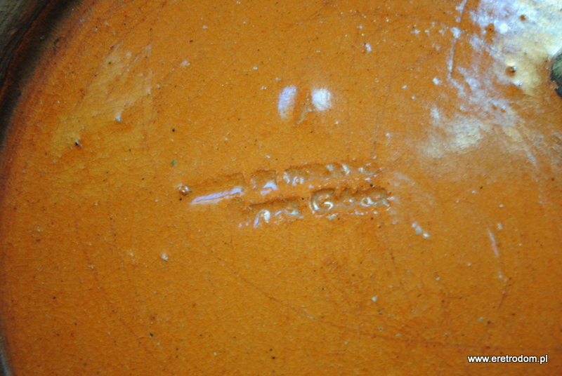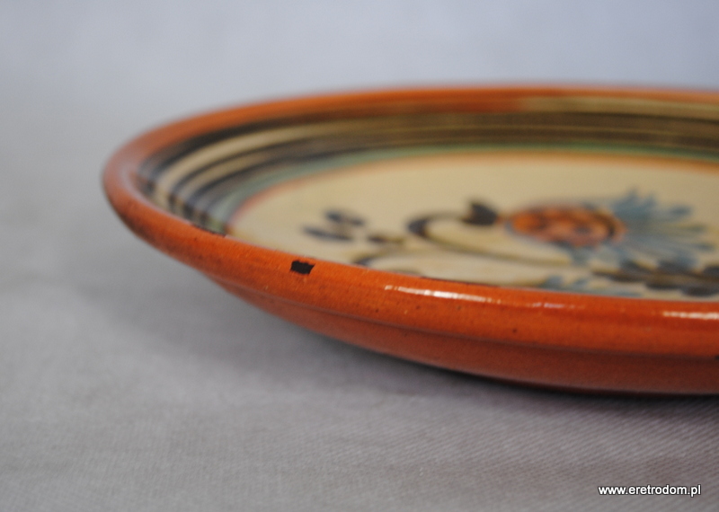 Patera wykonana w Spółdzielni Kamionka z Łysej Góry. Ceramika szkliwiona, ręcznie malowana. W tylnej części wycisk producenta, napis „Made in Poland, Łysa Góra”.