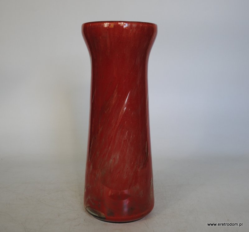 Wazon pochodzący ze Spółdzielni Kamionka z Łysej Góry. Szkło sodowe, ręcznie formowane, posiada pęcherze powietrza.