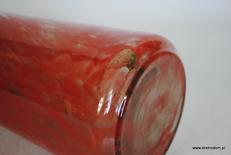 Stan dobry, drobne ryski powstałe z biegiem lat oraz wada fabryczna w postaci pękniętego pęcherza powietrza przy podstawie.