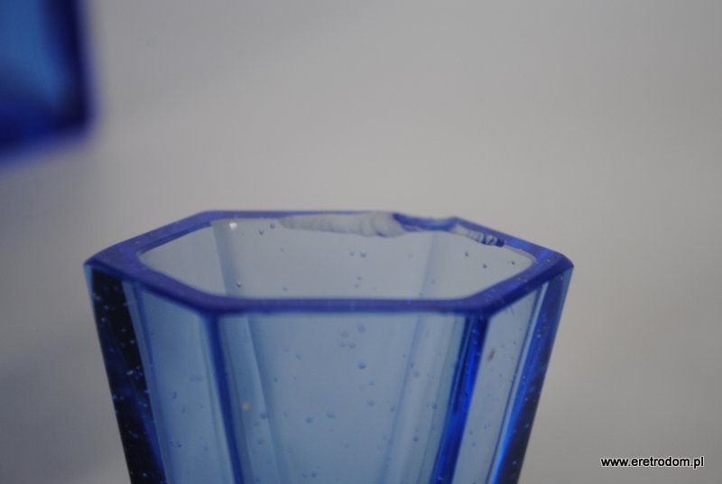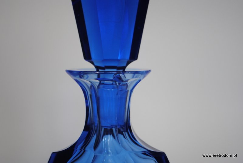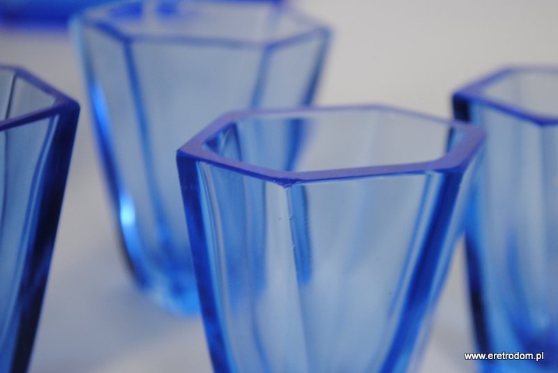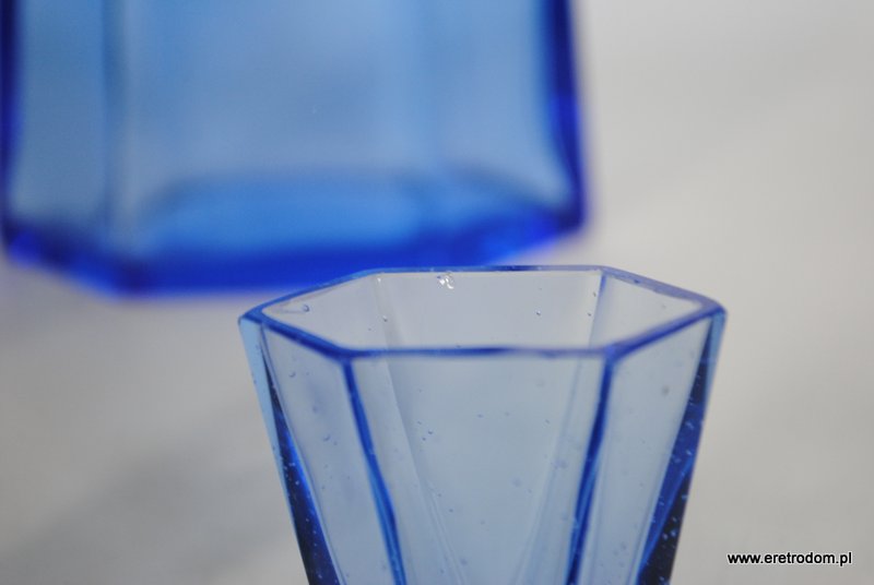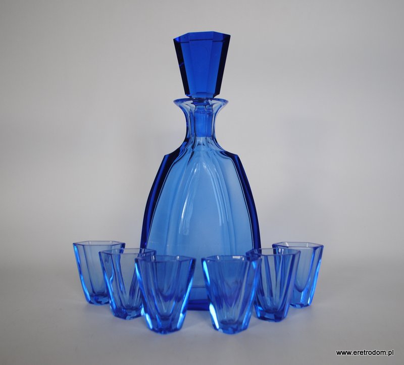 Karafka wraz z 6 kieliszkami. Grube, czyste szkło o pięknym wybarwieniu.