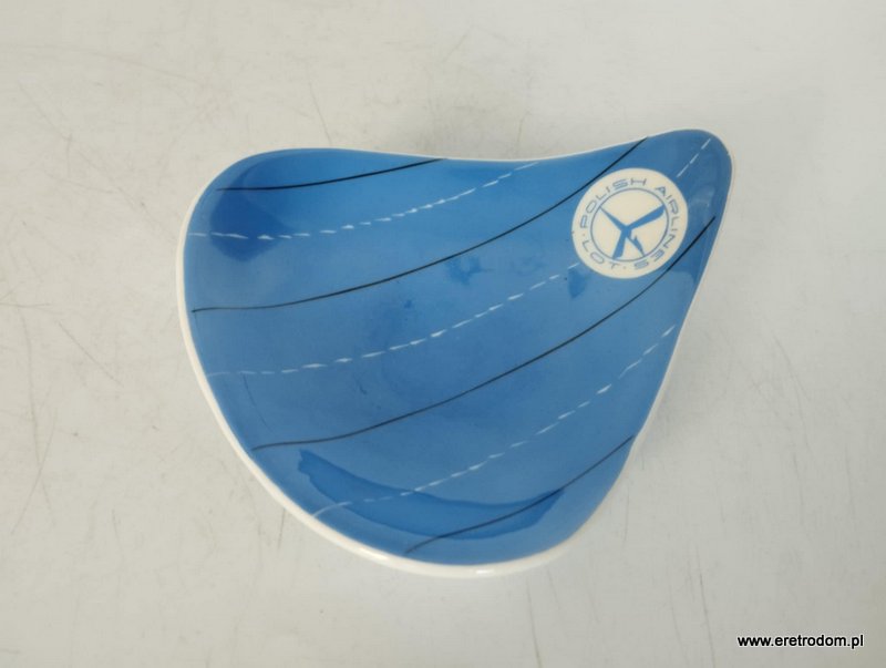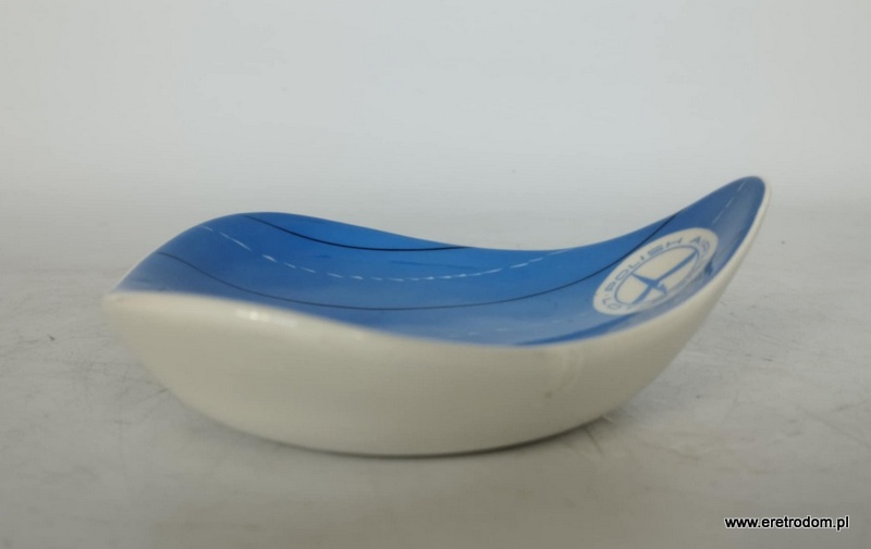 Popielniczka o nazwie Liść. Produkcja Karolina, proj. Danuta Duszniak, lata 60 XX w. Popielniczka reklamowa dla LOT’u.