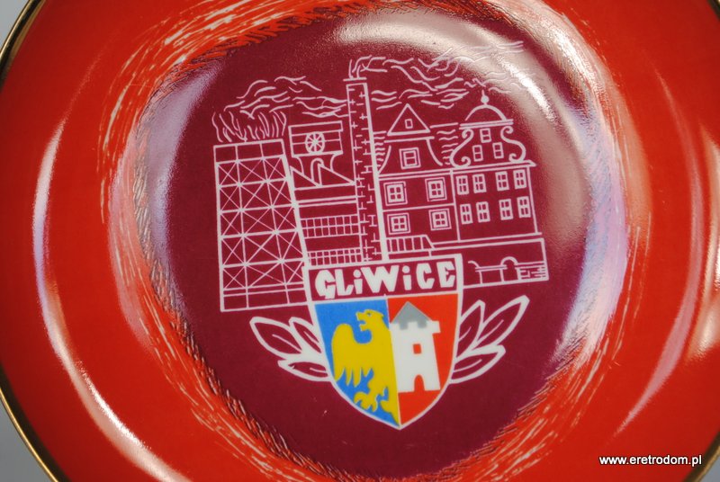 Patera dekoracyjna z motywem miasta Gliwice. Sygnowana Karolina, II poł. XXw.