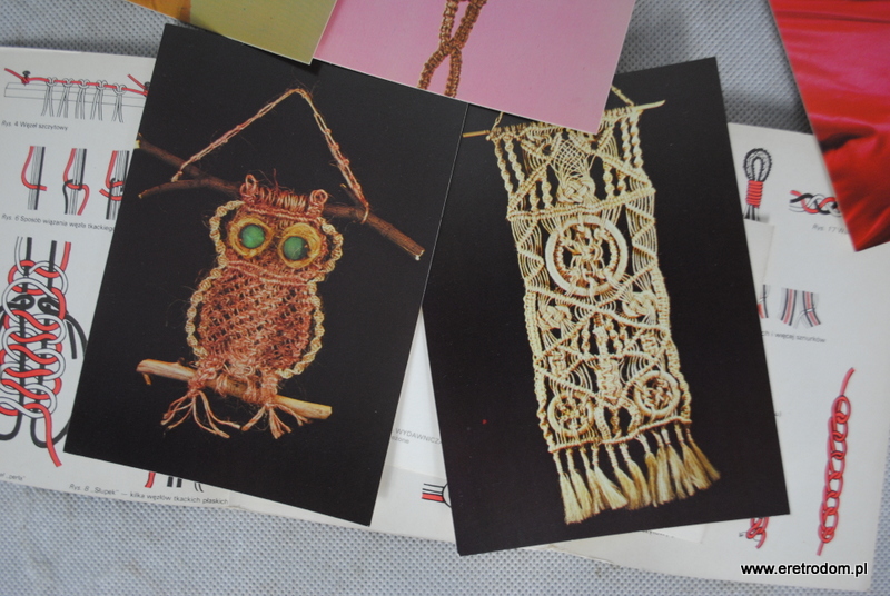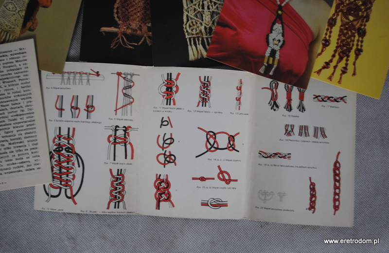 KAW, Warszawa 1985 rok. Ulotka/książeczka z naukę robienia makramy. W zestawie ładne widokówki pomocne w nauce.