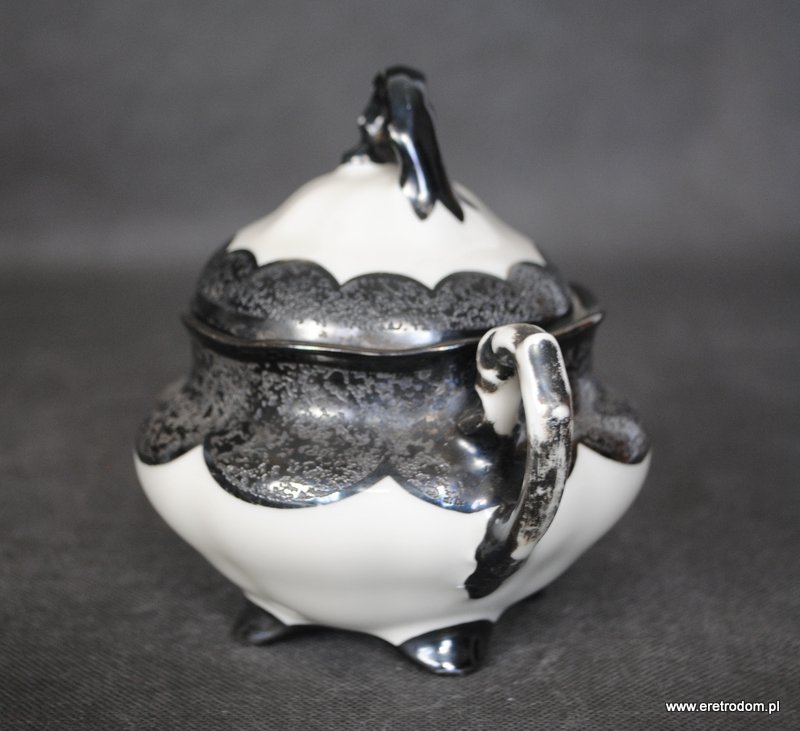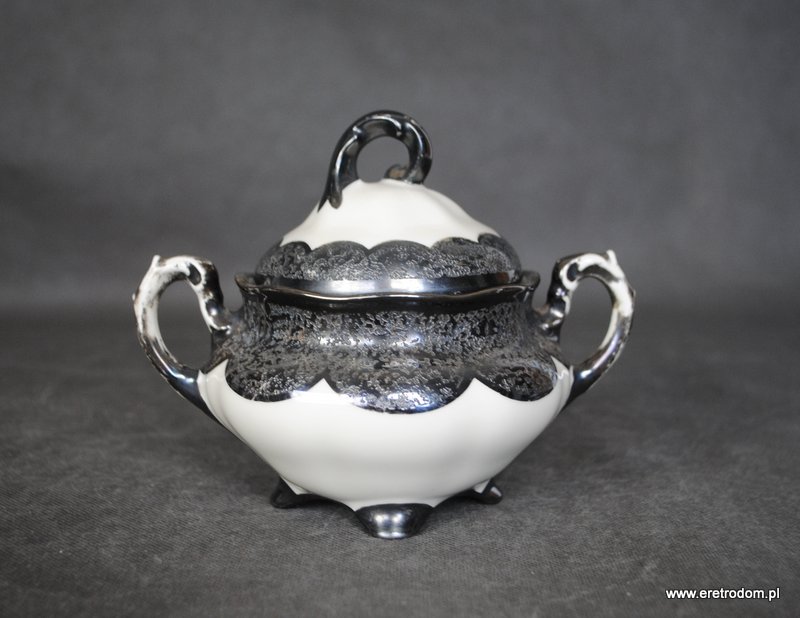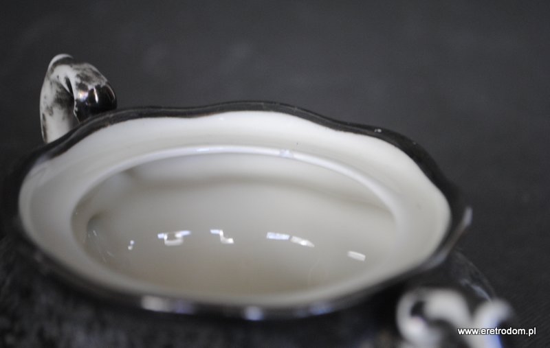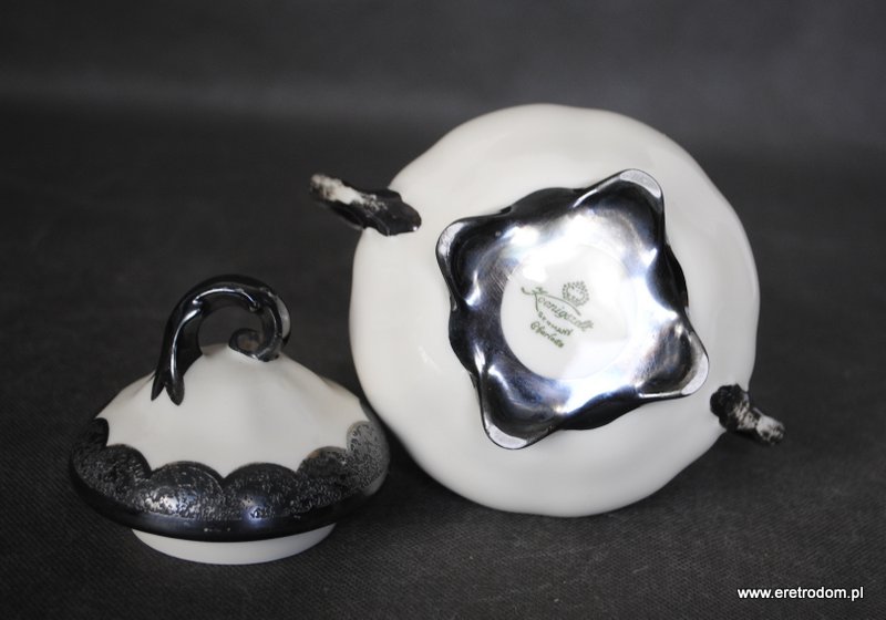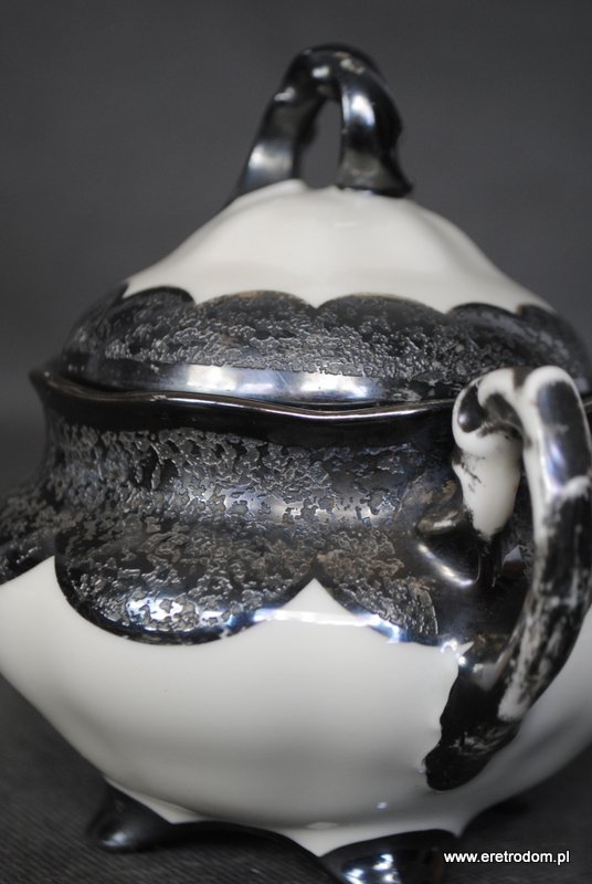 Cukiernica, I poł. XX w. Koenigszelt (stara Jaworzyna Śląska). Porcelana w kolorze ecru, grubo srebrzona w górnej części.