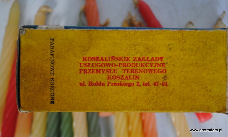 Zestaw świeczek w kartonowym opakowaniu. Koszalińskie Zakłady Usługowo-Produkcyjne Przemysłu Terenowego Koszalin. II poł. XXw.