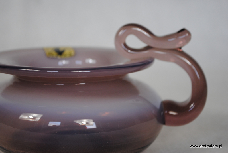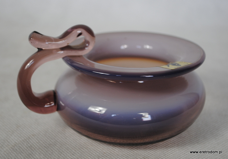 Naczynie dekoracyjne, kaganek, B. Świstacka, produkcja Krakowski Instytut Szkła. Szkło sodowe, barwione w masie, ręcznie formowane.