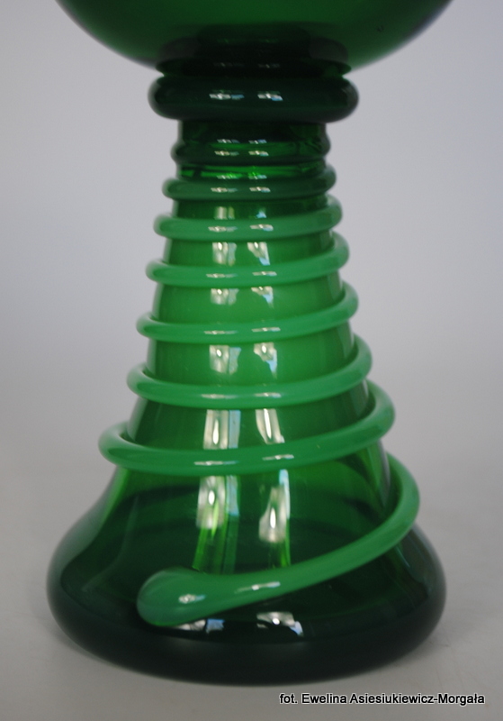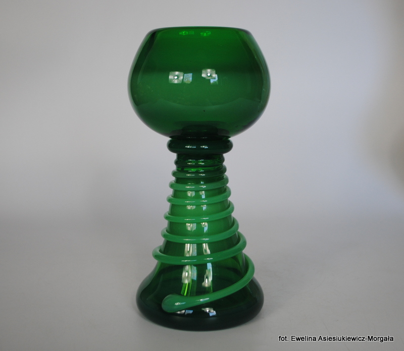 Wazon czy też puchar, Krakowski Instytut Szkła, II poł. XX w. . Szkło sodowe, ręcznie formowane, barwione w masie. Noga z finezyjną owijką.