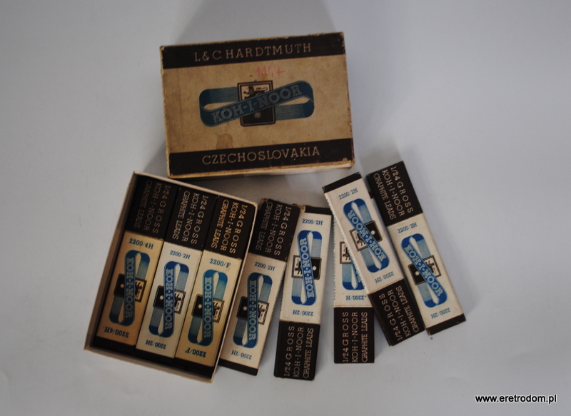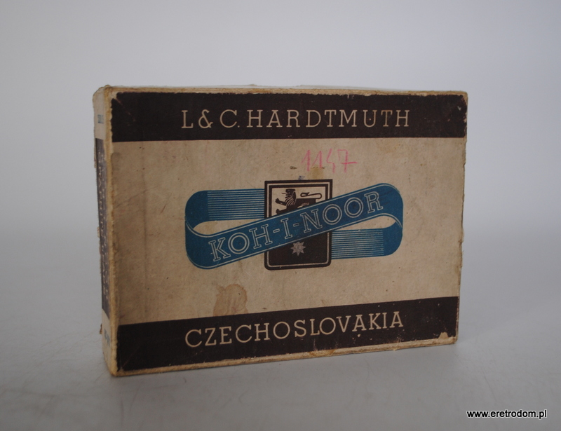 Opakowanie zbiorcze rysików zapasowych firmy Koh-I-Noor L&C Hardtmutch, Czechosłowacja, I poł. XXw. W środku 8 opakowań, w każdym opakowaniu 6 rysików. Rzadkość.