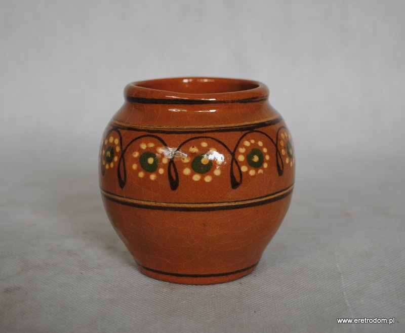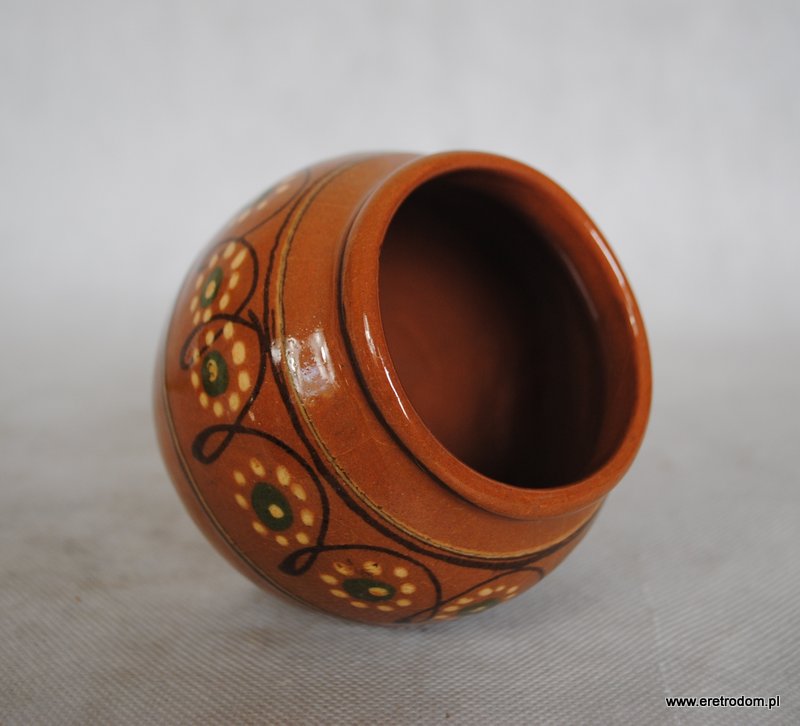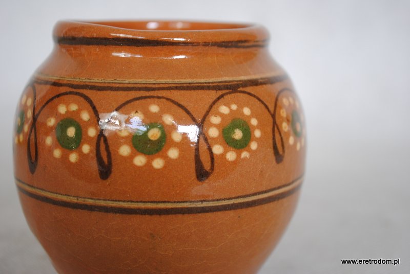 Wazon, produkcja Kamionka, Łysa Góra. Ceramika szkliwiona, ręcznie zdobiona.