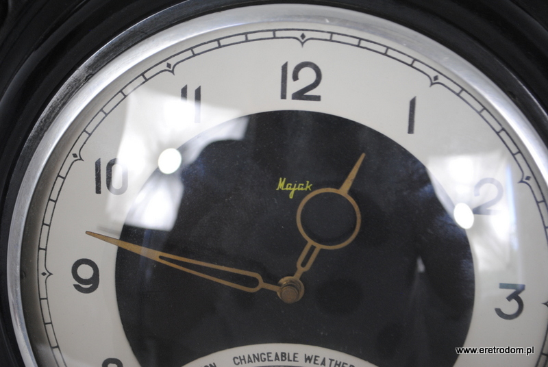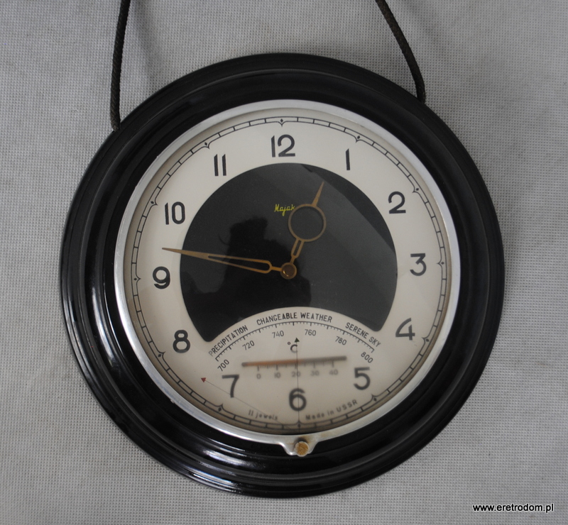 Zegar wiszący Majak (ZSRR). Wyprodukowany w II poł XXw. Metalowa obudowa. Na nakręcanie. Zegar sprawny.