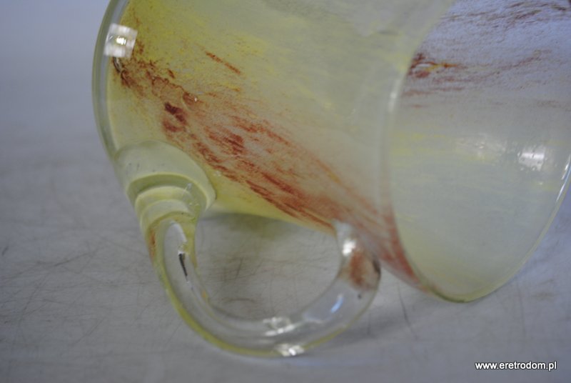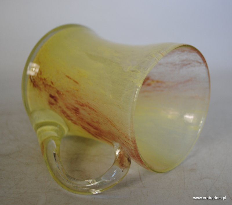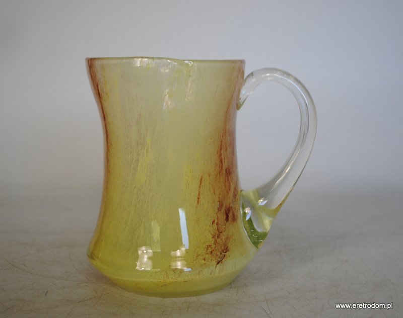 Kufel wyprodukowany najprawdopodobniej w jednej z polskich hut (II poł. XXw.) . Szkło barwione w masie.