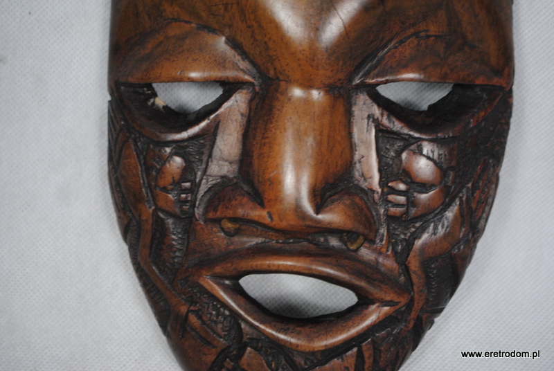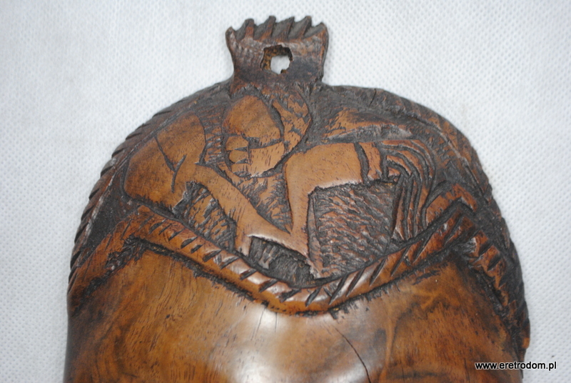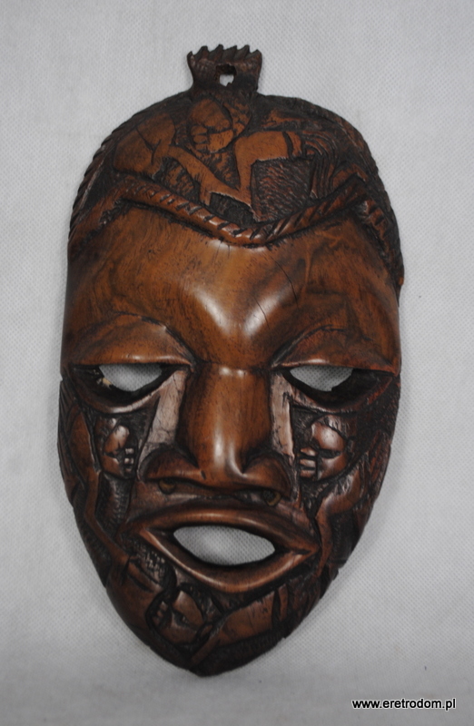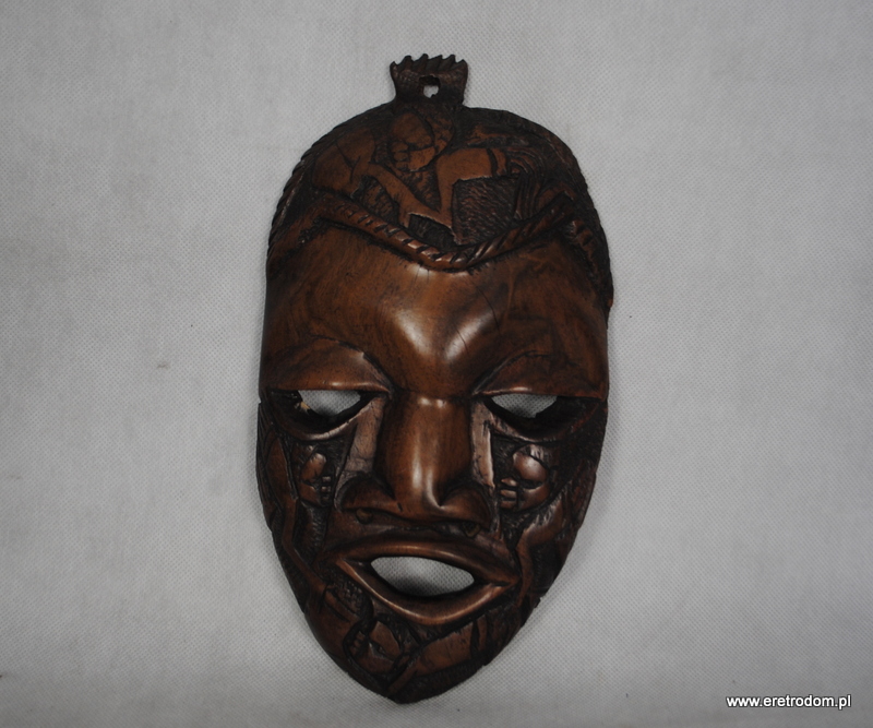 Maska afrykańska ręcznie wykonana z mahoniu. Do powieszenia.