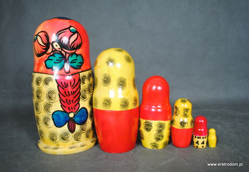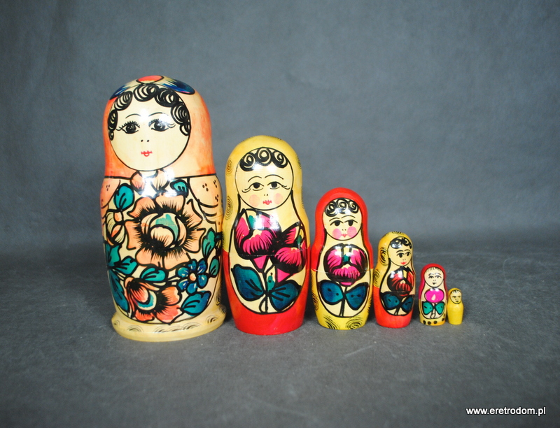 Zestaw Matrioszek wykonanych z lekkiego drewna. Pięknie, ręcznie malowane. W skład zestawu wchodzi 6 babuszek.
