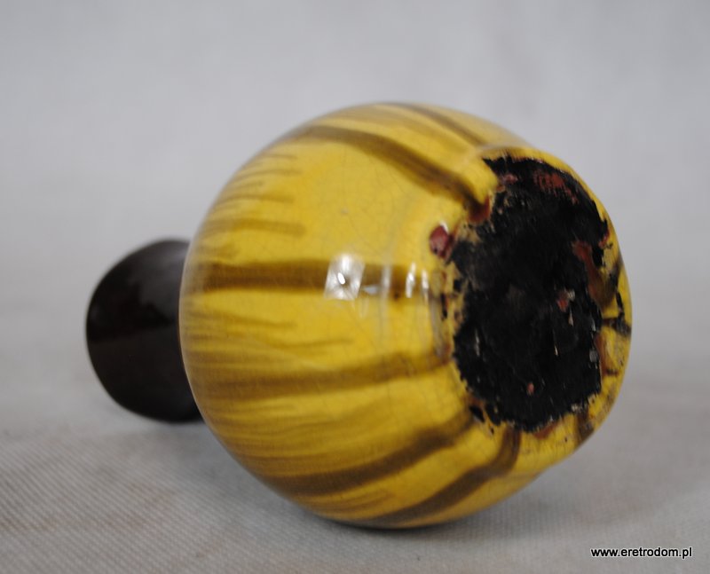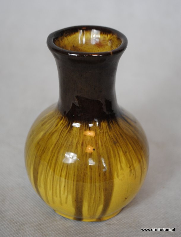 Wazon wyprodukowany w krakowskiej manufakturze Millenium. Lata 60-70 XXw. Ceramika szkliwiona w typowy dla wytwórni sposób. Spód malowany na czarno.