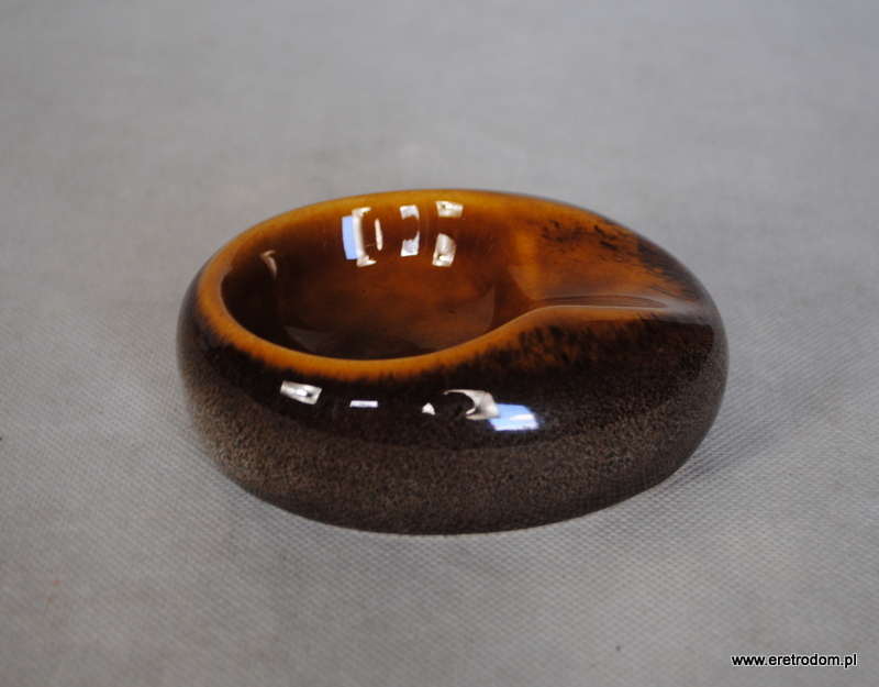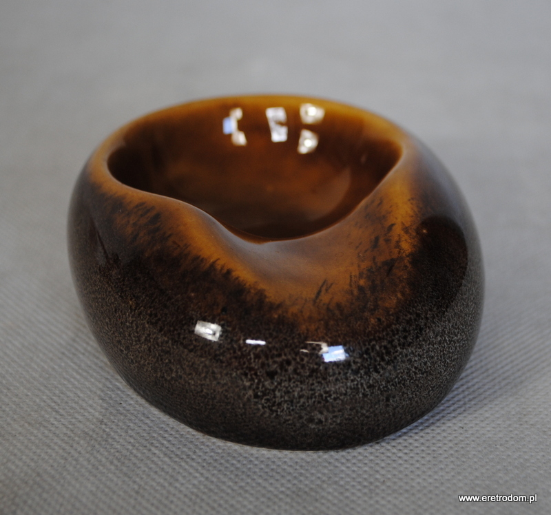 Popielniczka wykonana z Mirostowickich Zakładach Ceramicznych. Ceramika szkliwiona w typowy dla wytwórni sposób. Od spodu sygnatura producenta.
