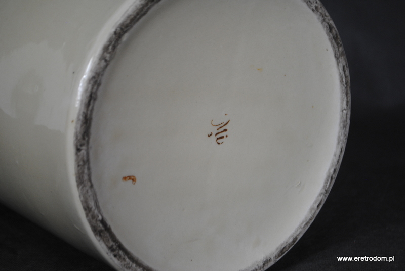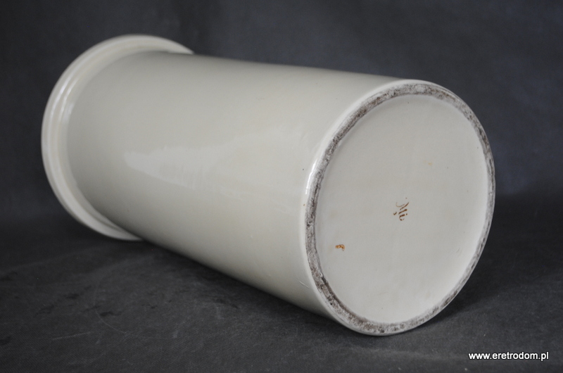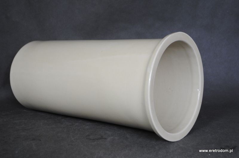 Ogromny pojemnik do lodów wyprodukowany w Mirostowicach poł. XXw. Porcelit w kolorze śmietanki, od spodu sygnowany. Dziś oprócz ciekawostki kolekcjonerskiej bo jest to przedmiot rzadko pojawiający się na rynku może służyć jako wazon podłogowy lub stojak na parasole.