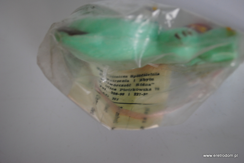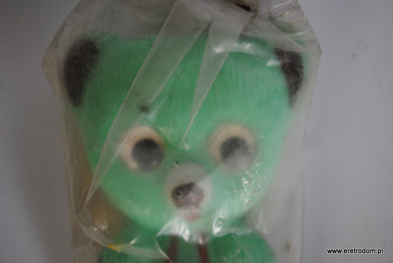 Kultowa zabawka z PRL, miś „zezolek”. Wyprodukowany w Rzemieślniczej Spółdzielni Wytwórczości Różnej. Całość o oryginalnym opakowaniu.