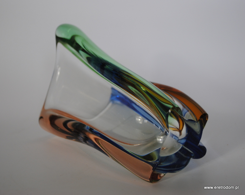 Wazon proj. Frantisek Zemek dla huty szkła Mstisov w Czechosłowacji. Seria Rapsodia. Szkło sodowe, ręcznie formowane, częściowo barwione w masie.
