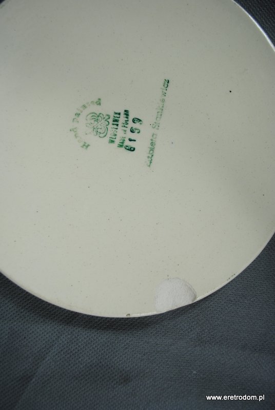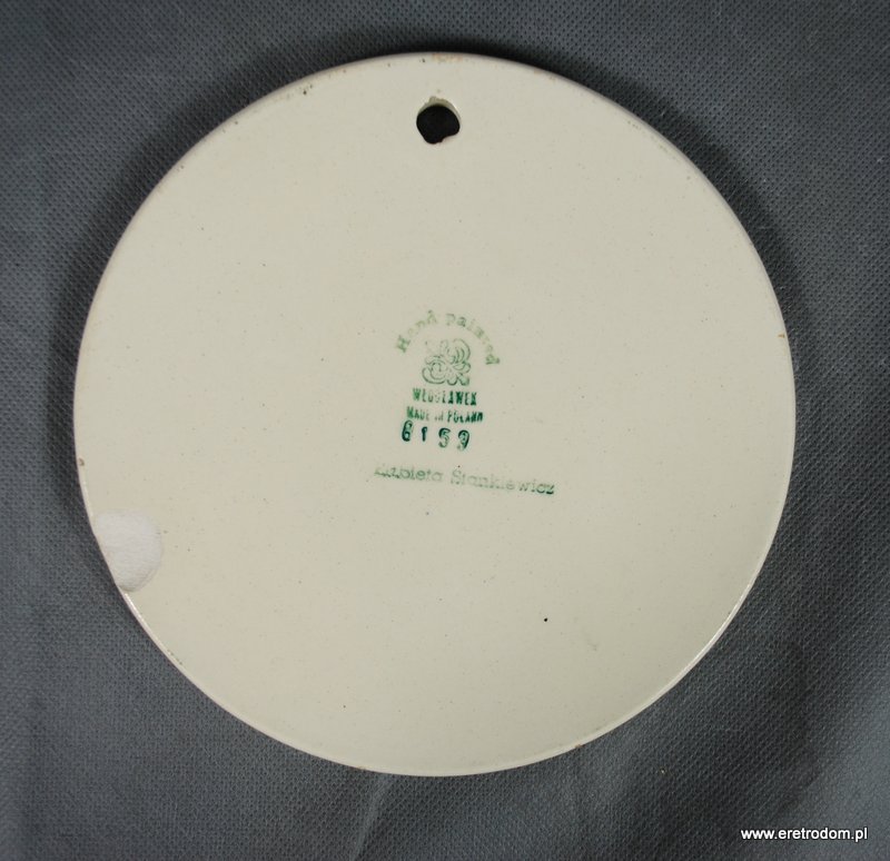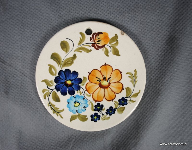 Okrągła deska z fajansu Włocławek, ręcznie malowana.