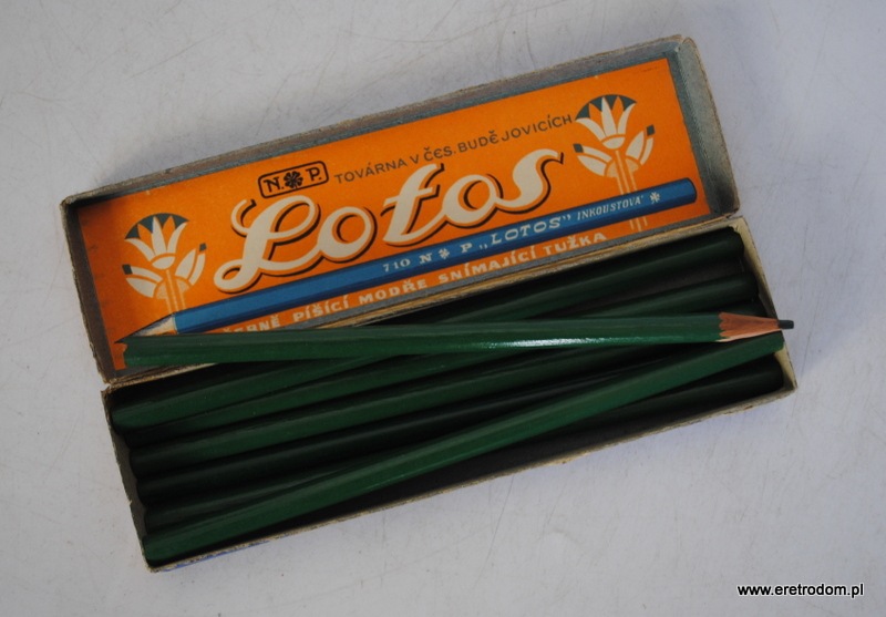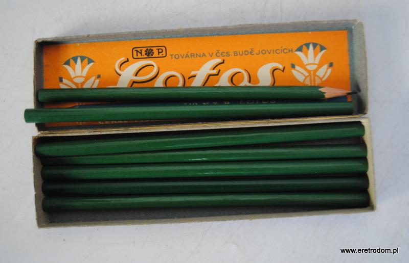 Ołówki Lotos. I pol,. XXw. Tekturowe opakowanie + 7 ołówków.