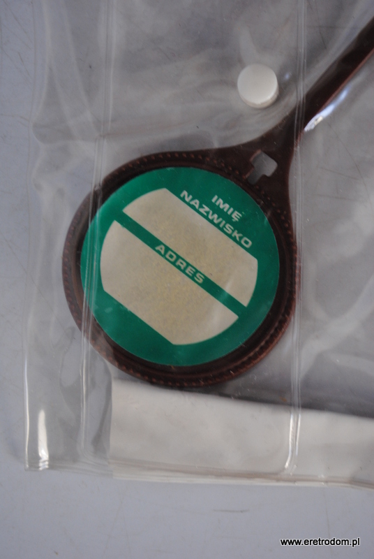 Plakietka reklamowa firmy Orbis. Przypinka z miejscem na imię i nazwisko, w oryginalnym opakowaniu.